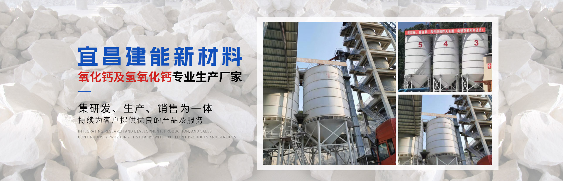 宜昌建能新材料有限公司 地址位于湖北省宜都市姚家店鎮(zhèn)油榨坪村二組,交通便利。我們公司是一家專業(yè)從事石灰研發(fā)、生產(chǎn)、銷售為一體的高科技生產(chǎn)型企業(yè)。公司采用優(yōu)良石頭資源,出產(chǎn)的石灰品質(zhì)優(yōu)良,主要經(jīng)營產(chǎn)品有石灰石、石灰塊、石灰石粉、氧化鈣、氫氧化鈣、母料專用灰鈣粉、建筑用石、方解石粉、重晶石粉等。 公司生產(chǎn)的石灰、碎石等產(chǎn)品,以優(yōu)良的產(chǎn)品質(zhì)量,獲得了不少客戶的信任。 公司秉承“誠信、優(yōu)質(zhì)、共贏”的經(jīng)營理念,堅持用戶至上、服務優(yōu)先原則,用心解除客戶所憂;以科技服務和好的產(chǎn)品服務客戶;始終堅持以“想顧客之所想,急顧客之所急”的經(jīng)營理念,不斷前行......